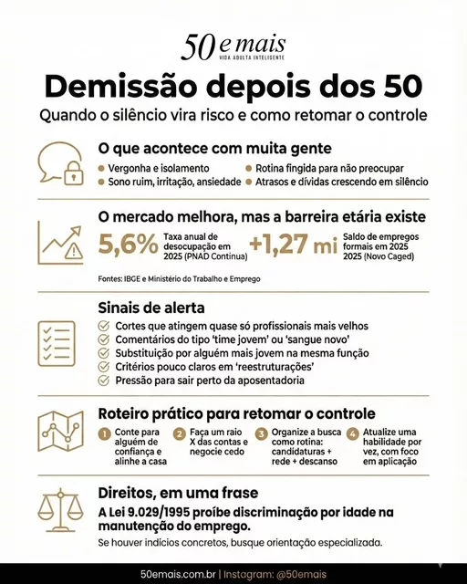 A verdade apareceu sem delicadeza, no meio da papelada da casa. E o choque não foi apenas financeiro. Foi identitário. Para muita gente, trabalho é pertencimento, rotina, reconhecimento, um lugar de utilidade. Quando acaba, fica um eco. E, depois dos 50, esse eco costuma vir com uma camada a mais, a suspeita de que experiência se transformou em “custo” ou “fora de perfil”.