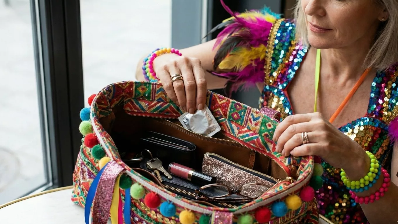 Ela abriu a bolsa como quem abre uma gaveta de casa, com a praticidade de quem já pagou boletos demais para romantizar improvisos. Chaves, documento, batom, um brilho que não pede licença. E, no canto, uma camisinha. Não escondida, não embrulhada em culpa, só ali, ocupando o lugar de um item comum, como um lenço de papel ou um par de óculos.